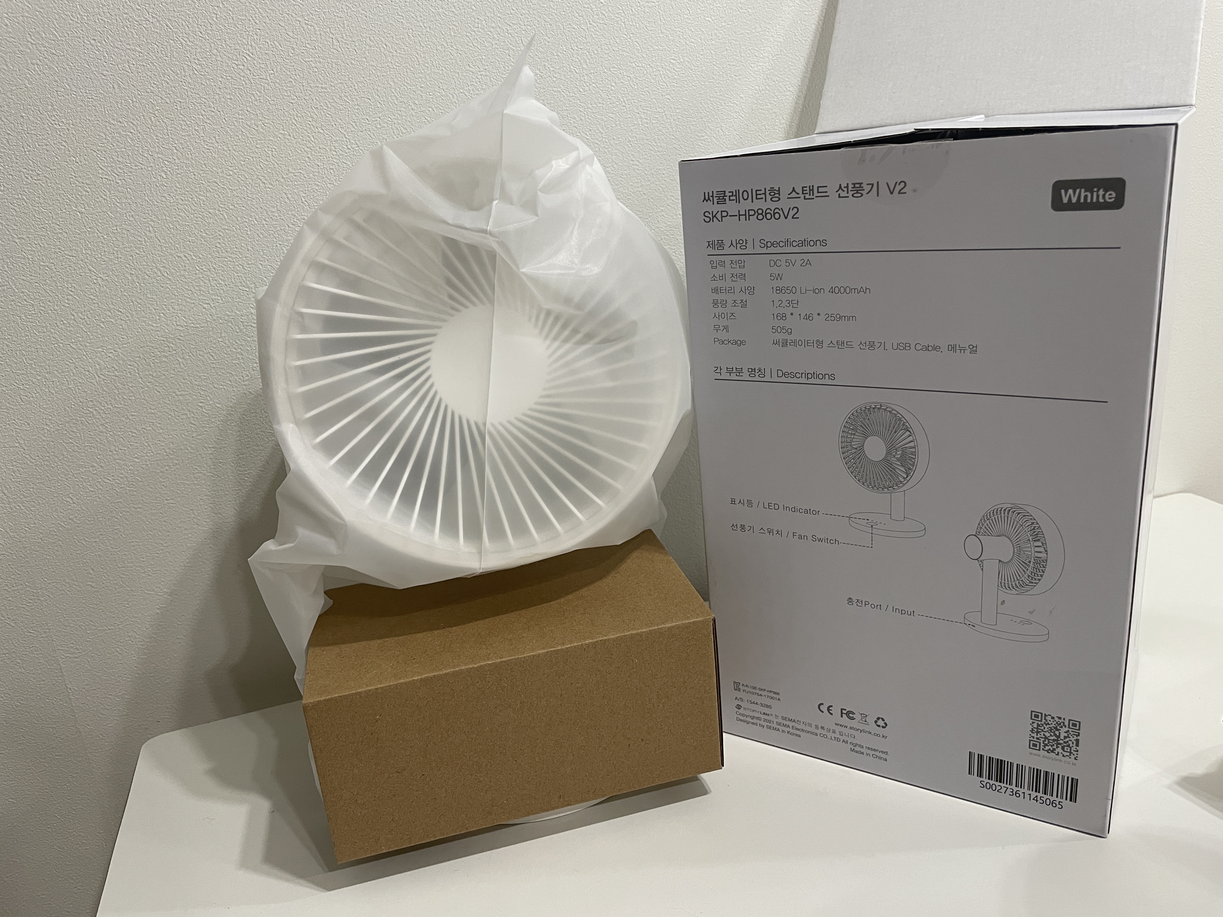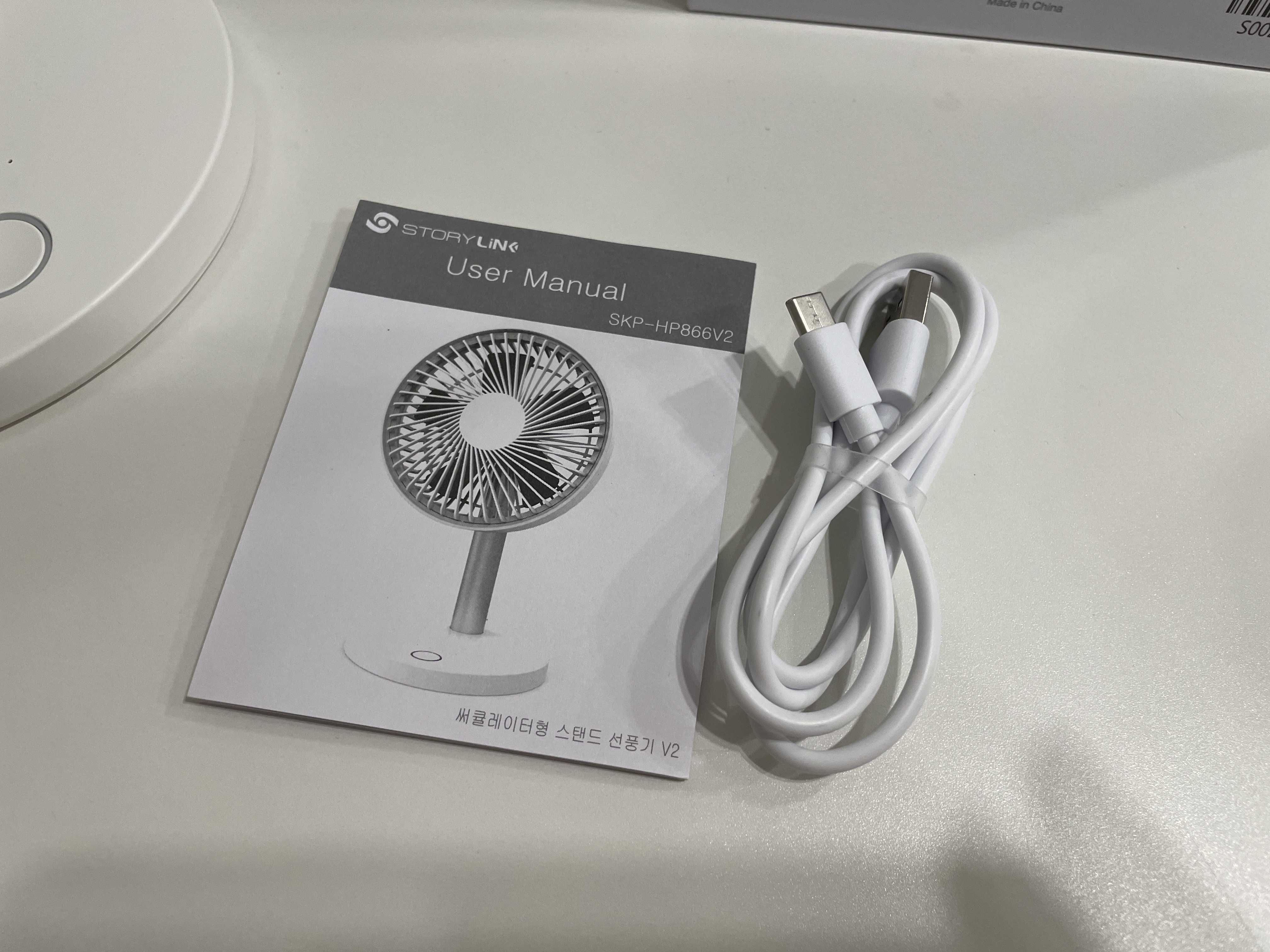 선풍기와 함께 든 상자 속에는 C타입 케이블이 들어 있어요.