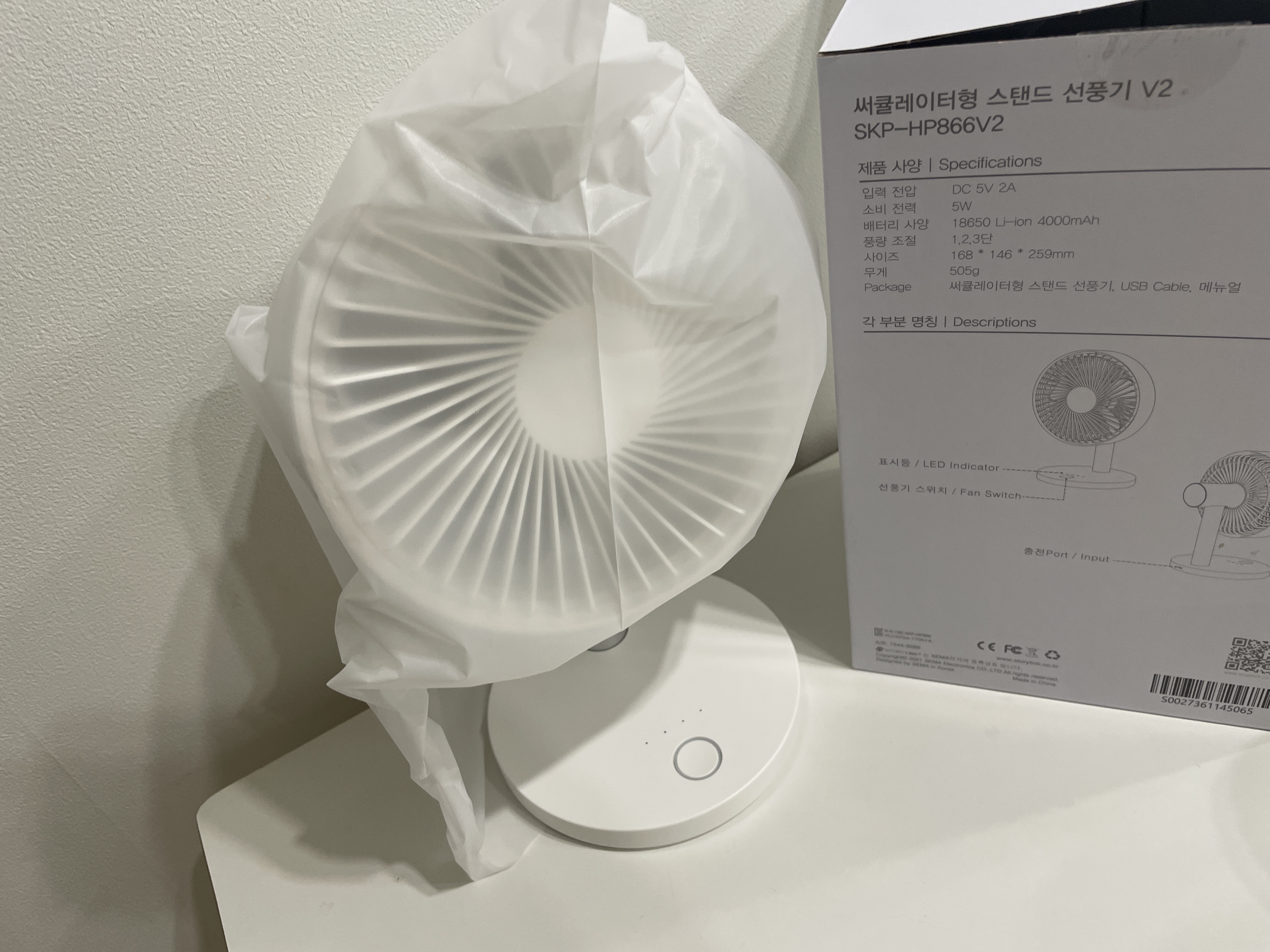 이 선풍기가 충전식이라 미리 충전해두어서 다행이었답니다~ :)